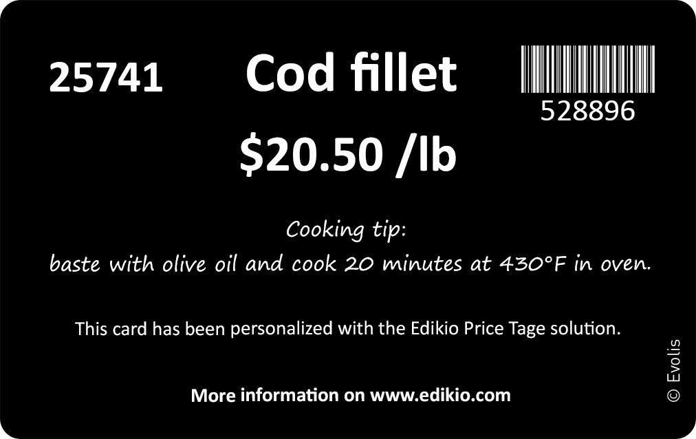 Showcase your fish products with clear, durable and professional price labels. Edikio, the simple and elegant solution.