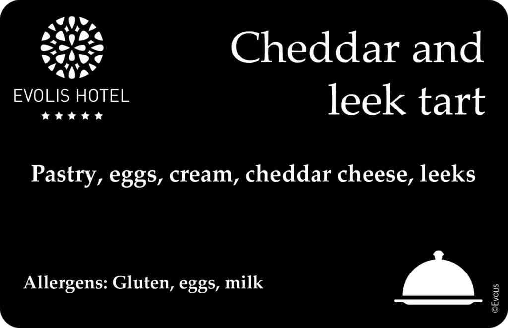 With Edikio Guest, you can unify your buffet labels and food tags for buffet presentation, boosting your brand’s image. Our printing solutions offer full customisation — from the details shown (dish names, translations, allergen info) to the look (card material, colour, size). You have complete control to create the perfect buffet food label cards. Every item gets its place, and each label delivers relevant information that supports your professional, polished image.