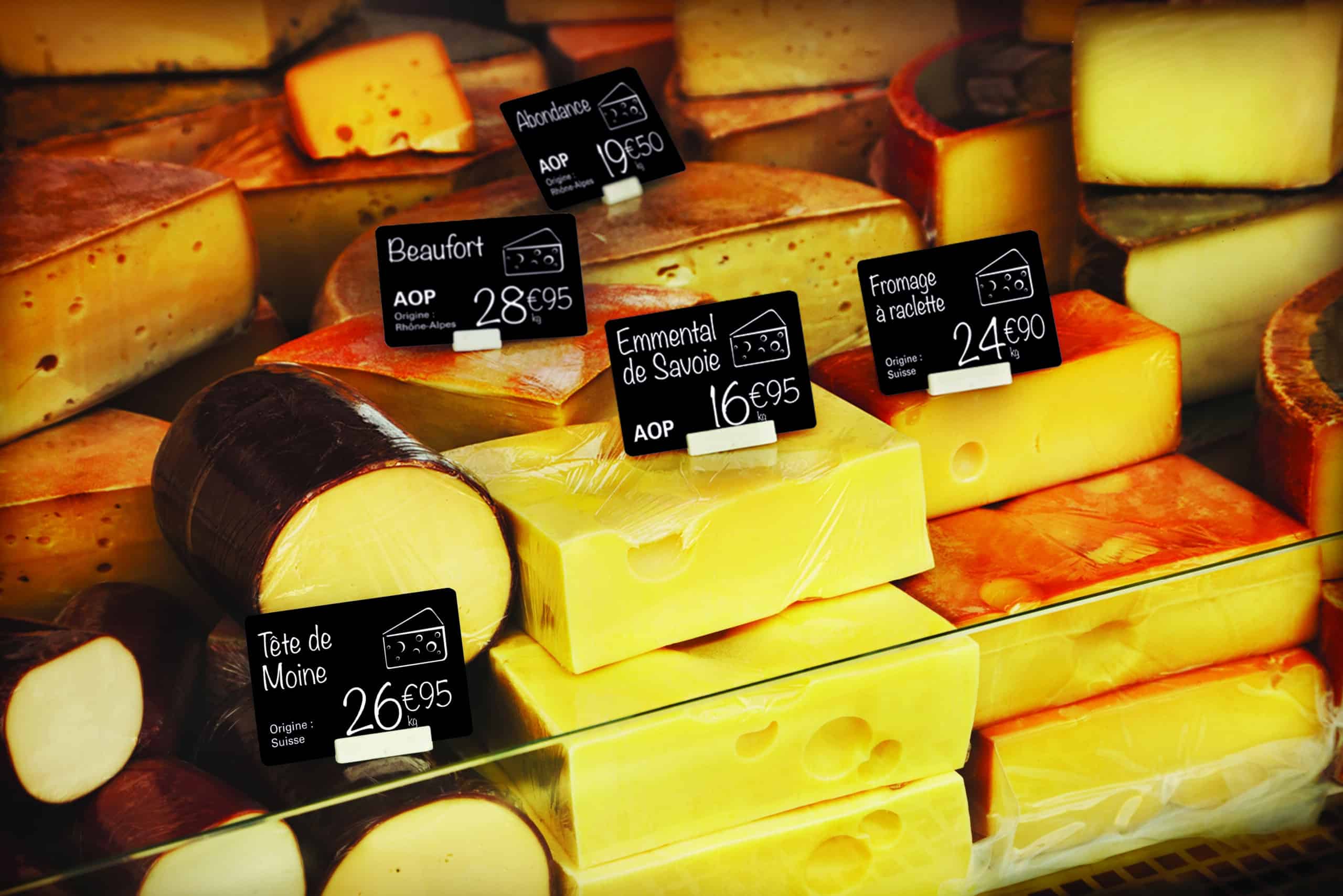 Eine klare Beschilderung ist ein wichtiges Verkaufsinstrument, vor allem für Kunden, die mit den verschiedenen Sorten, die Sie anbieten können, nicht vertraut sind. Und wenn sie eine Orientierungshilfe benötigen, kommen die Präsentationsetiketten ins Spiel. Müssen Sie den Namen, die Käsesorte oder andere Informationen über die Herkunft Ihrer Produkte angeben? Stellen Sie ein Beschriftungslösung. Mit Edikio Price Tag brauchen Sie keinen "Munster", um Ihre eigenen Etiketten zu erstellen! Sie sind :
