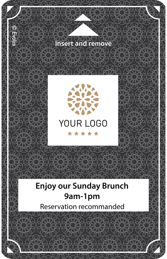 Make your establishment's services more visible with personalized information printed directly on your room access card. In this way, you invite your customers to discover offers they haven't yet taken advantage of.