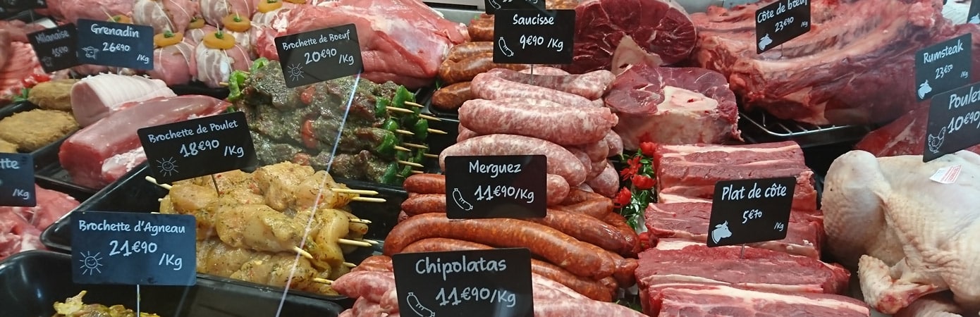 Harmonized labeling in a French butcher shop